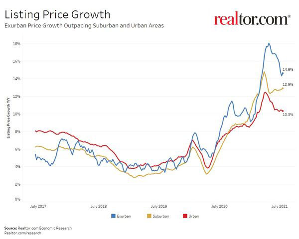 Realtor.com Chief Economist Danielle Hale acknowledges that the jury is still out on the fate of exurbs. In a recent report for the site, Hale explained, “It’s possible that some areas that saw prices rise because they were particularly attractive during the pandemic might not be able to sustain those high prices… The factors that drew people to those areas, like having a lot of space and being far away from everything else, may change.” The factors that drew shoppers to exurbs were highly volatile.