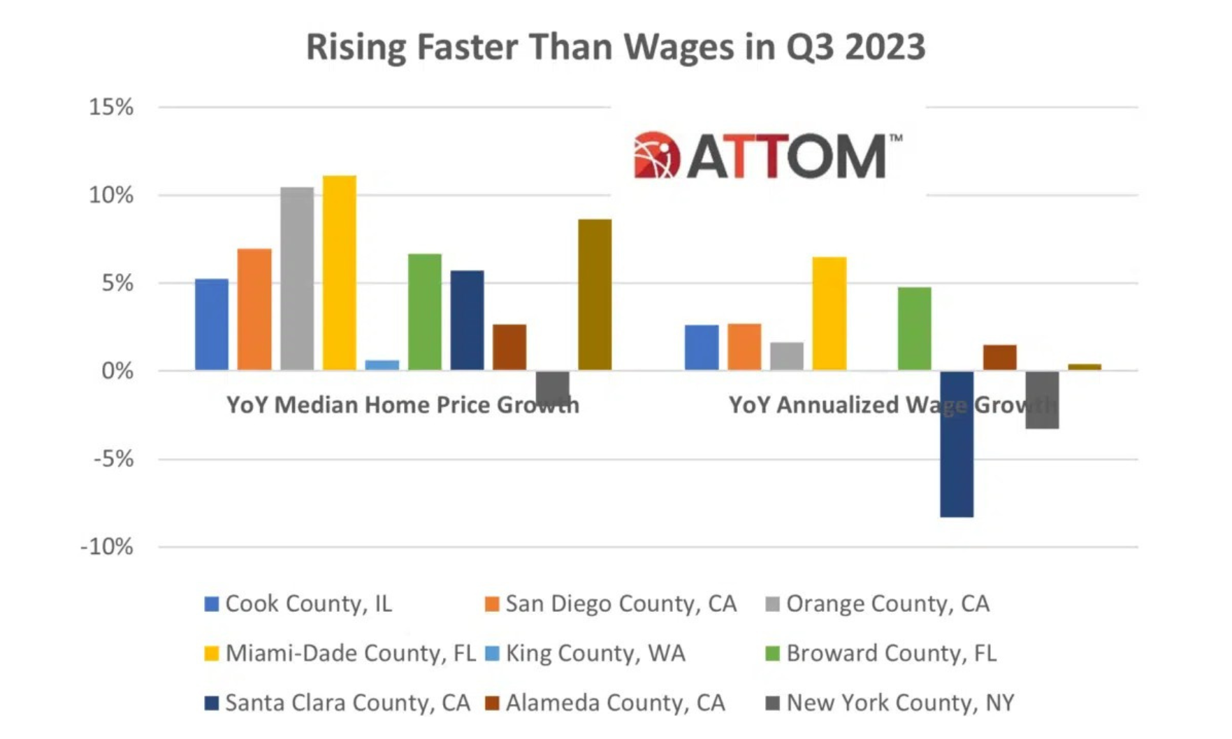 Housing affordability has worsened in many parts of the country as wages fail to grow at the same pace as home prices, according to new data from ATTOM.