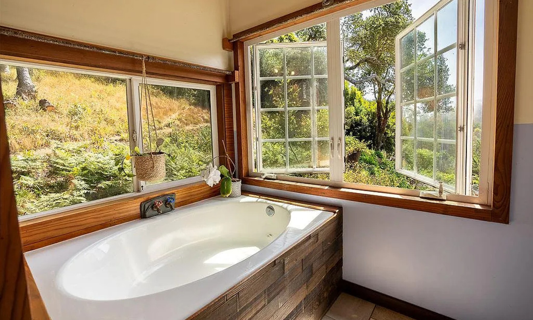 This listing, nestled in the hills above Pfeiffer Beach in Big Sur, California, is constructed from two giant redwood wine barrels.