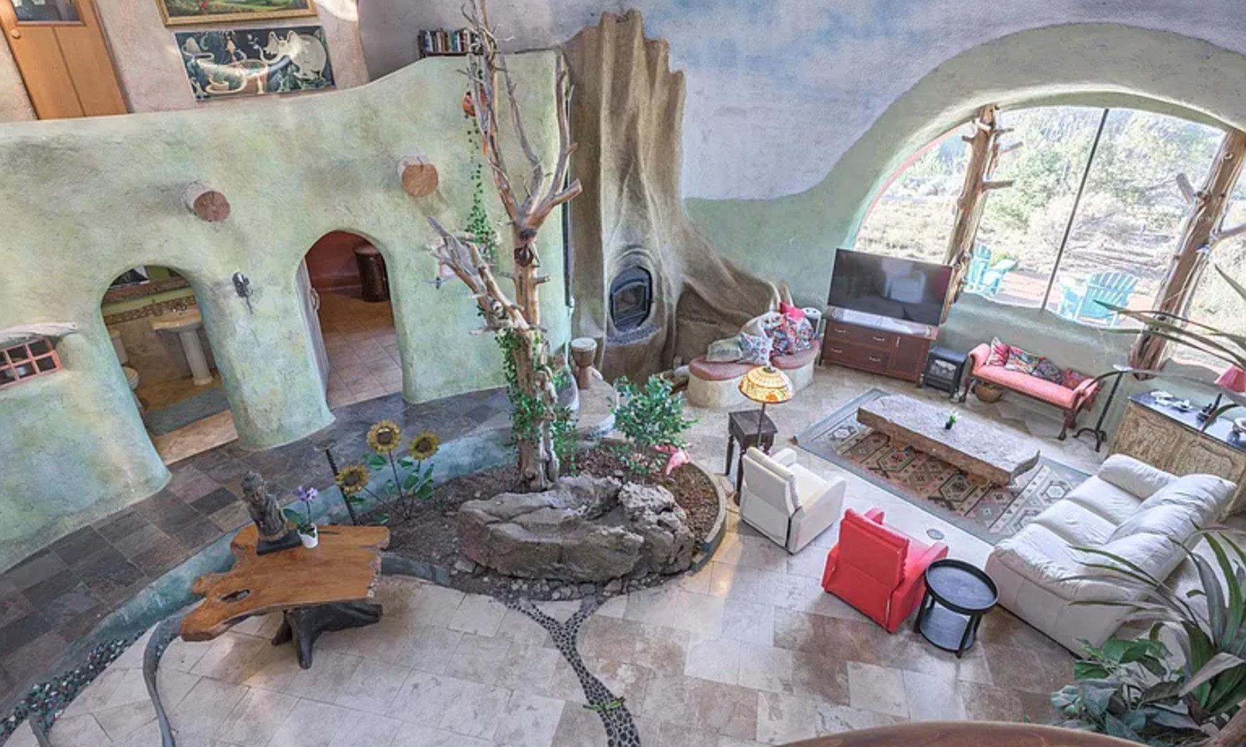 Step inside this adobe-style dome in Taos, New Mexico, and behold the hand-painted fairytale dreamland inside.