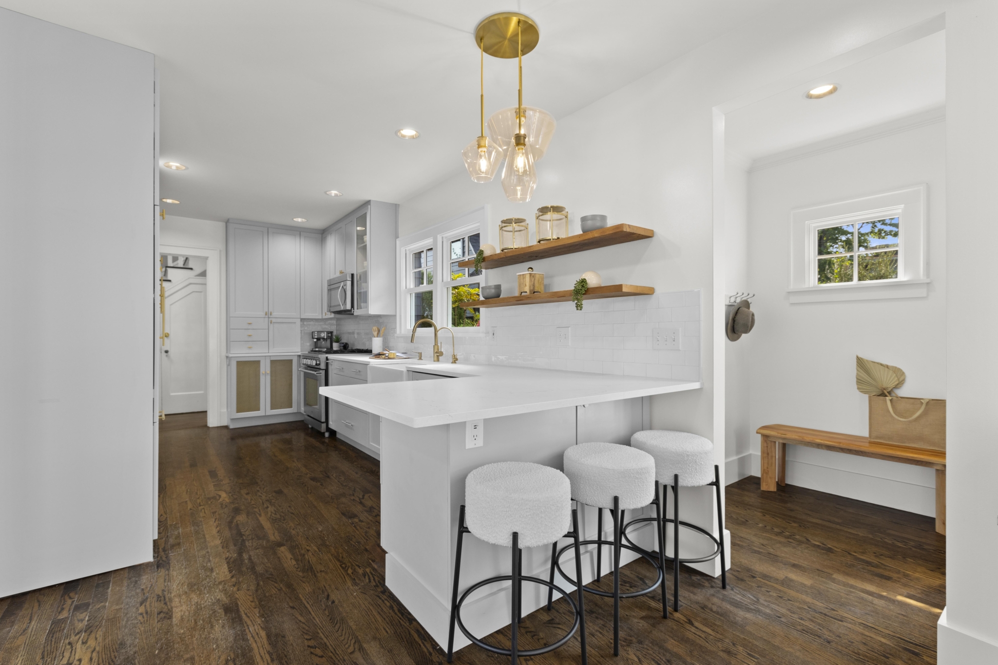 Nestled on a picturesque tree-lined street, this thoughtfully remodeled Dutch Colonial effortlessly marries timeless architectural charm with sophisticated, modern updates. A graceful entryway sets the tone, inviting you into a home filled with elegant spaces that honor the home’s original character.