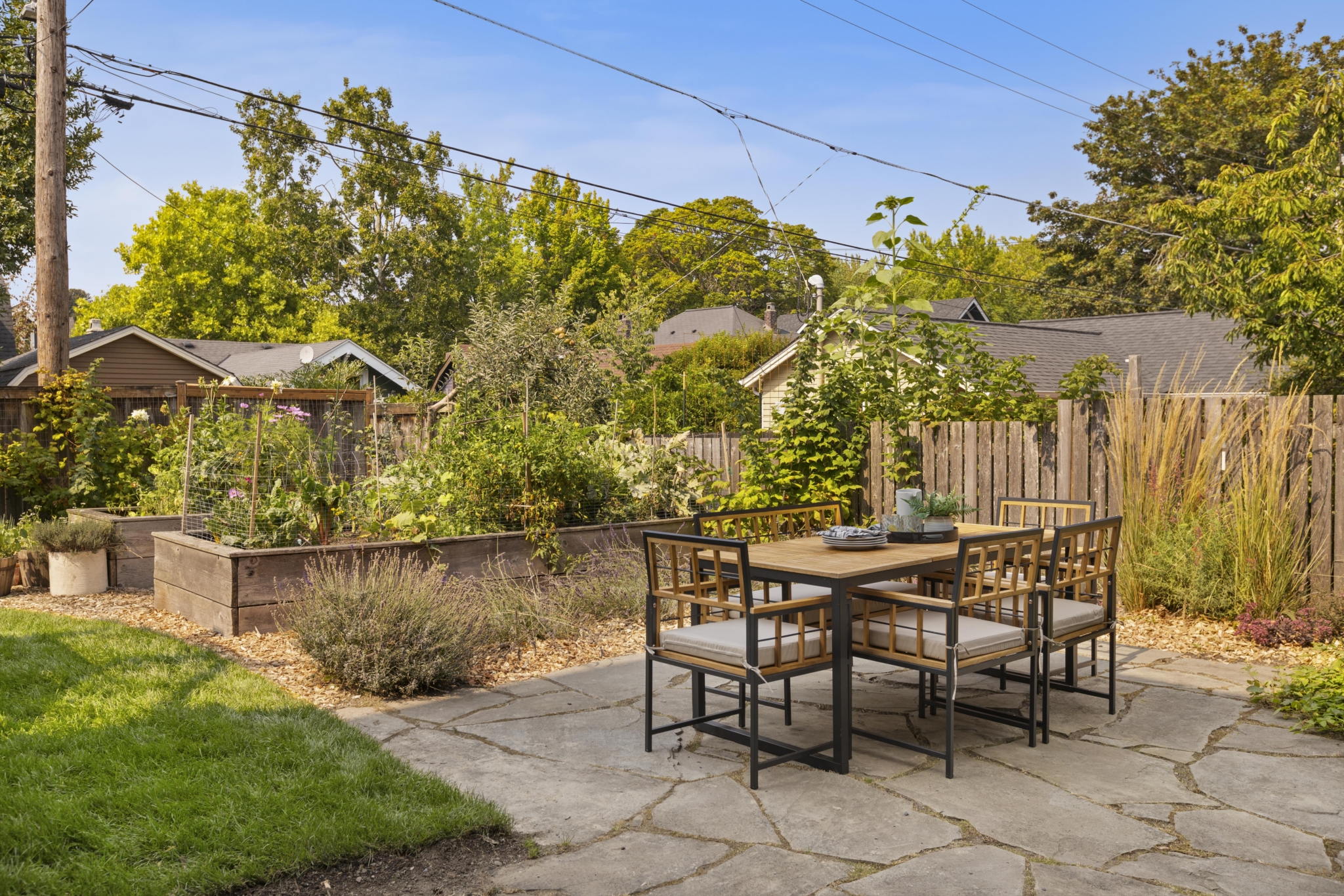 Outside, the home is surrounded by terraced gardens, mature fruit trees and raised beds — a sanctuary for the gardener at heart and a dream setting for entertaining. A peaceful and private escape located just minutes from the charm of North Capitol Hill with its quaint cafes, local shops and the beautiful Volunteer Park.